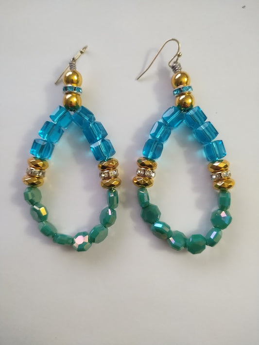 Blue and Gold Dangle Earrings - Boho and Chic, Any Occasion Wear - Handmade Jewelry