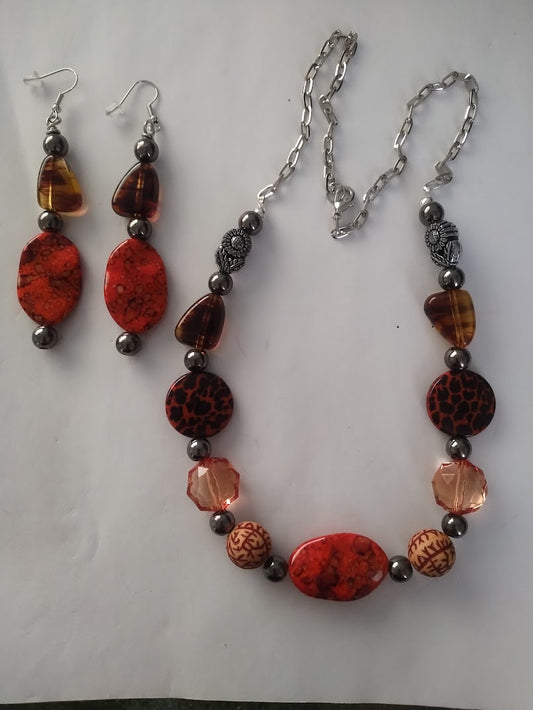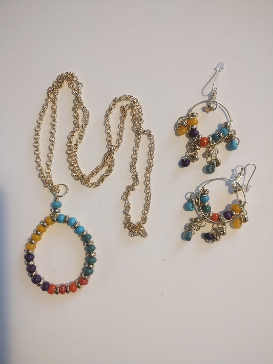Boho & Hippie Necklace and Dangle Earring Set - Chic, Casual Wear - Handmade Jewelry