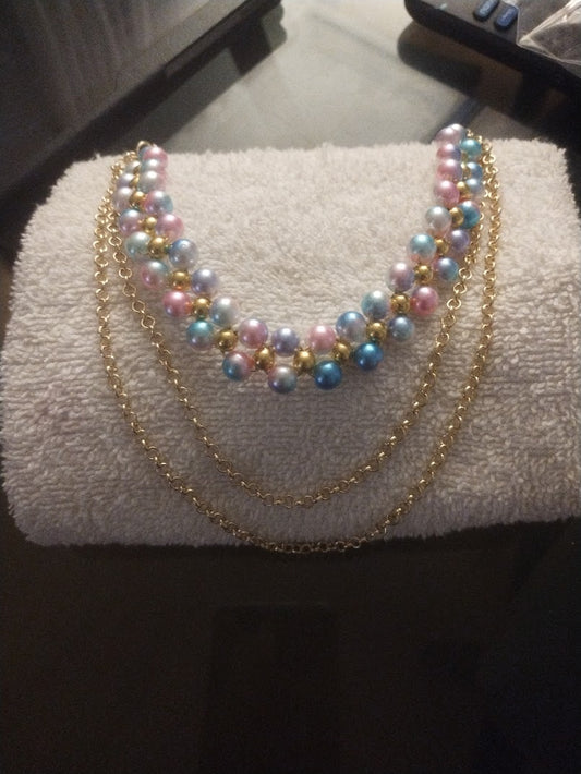 Choker - Beautiful multi-colored choker with gold dangle chains. Wear to any special occasion, Gift for any women - Handmade Jewelry
