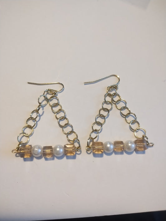 Chain Link & Pearls Earrings - Handmade Jewelry